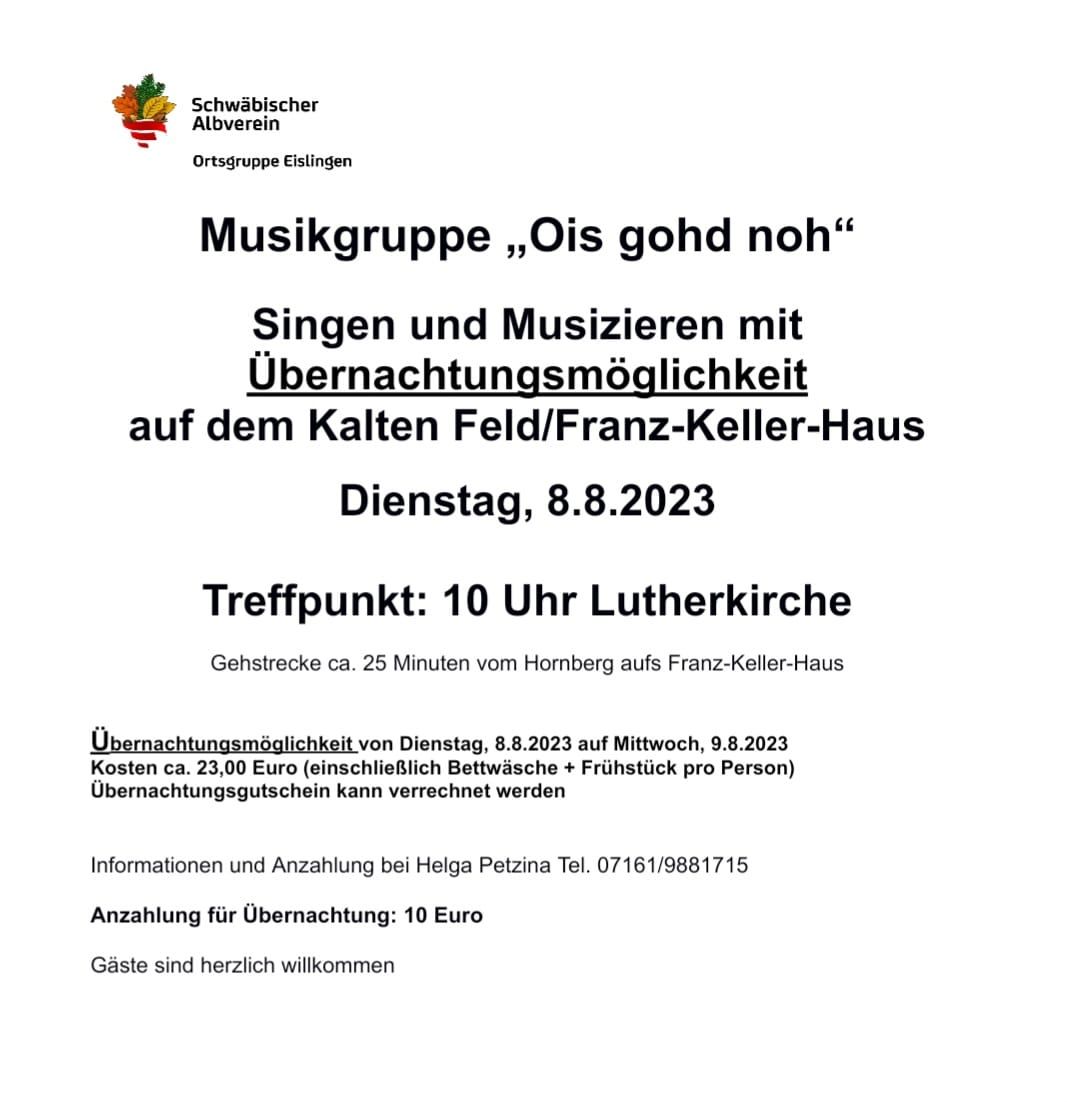 Musikgruppe Di., 08.08.2023 - Mi., 09.08.2023, Eislingen Uhrzeit: 10:00 Ort: Parkplatz Lutherkirche Ulmerstr. 1 73054 Eislingen iCalendar Mit dem Laden der Karte akzeptieren Sie die Datenschutzerklärung von Google.Mehr erfahren Karte laden Google Maps immer entsperren zur Übersicht