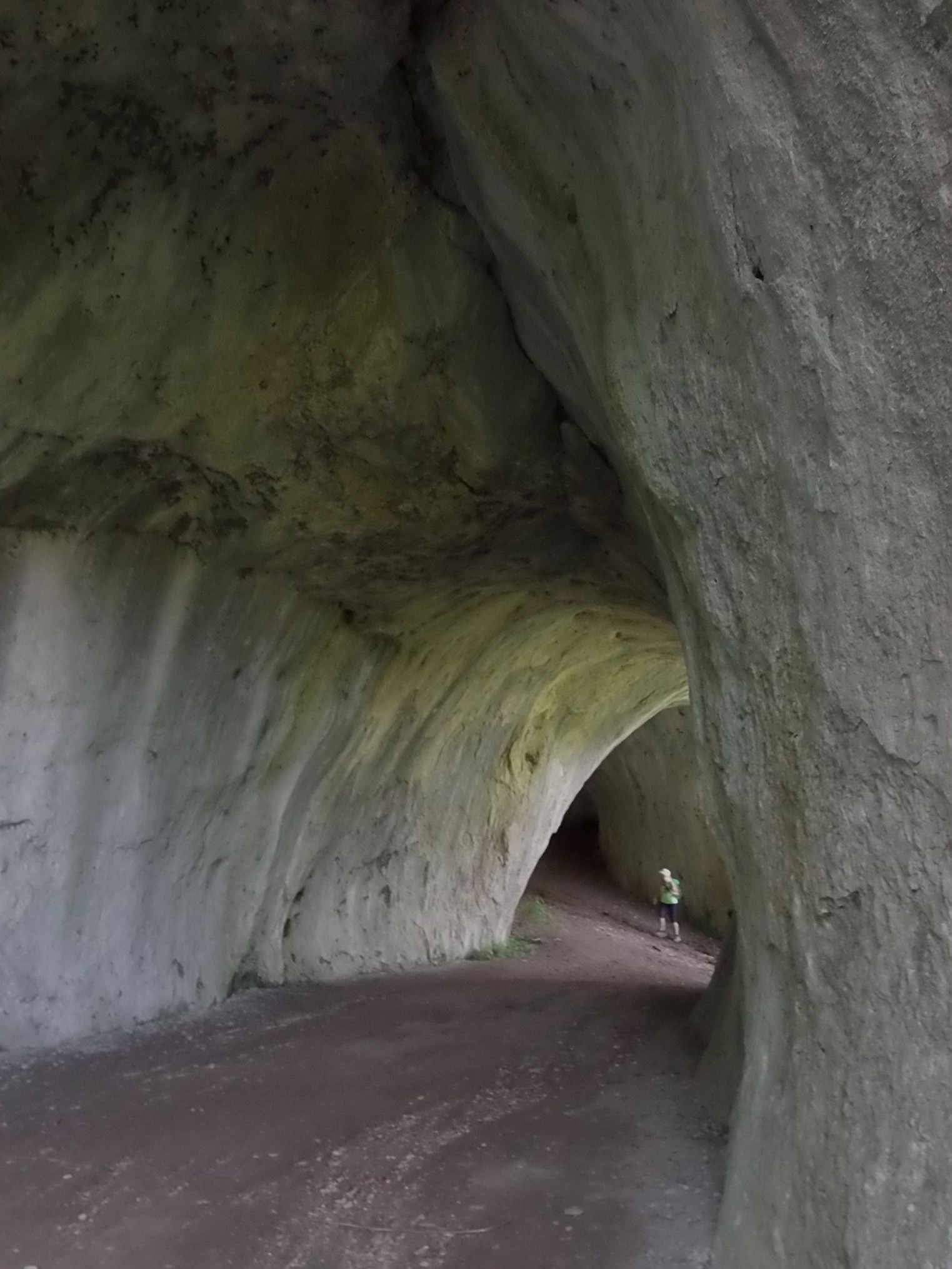 Weiter dem Weg folgend kommen wir zum Sedelfelsen. Hier erhalten wir prächtige Ausblicke nach Lautern, Essingen und Aalen. Unser nächstes Teilziel ist die Große Scheuer, die zu einem Höhlensystem das bereits in prähistorischer Zeit kollabierte, gehört. Entstanden somit durch einen Bergsturz. Der vordere Höhlenbereich ging dabei verloren. Durch torartige Eingänge ist die Höhle gut mit Tageslicht versorgt. Diese liegt auf 705 m NN und ist 44 m lang