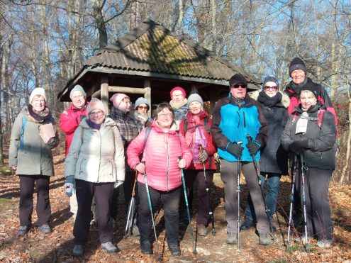 Anschließend wanderten wir durch den sogenannten „Grand Canyon von Geislingen“ zum Tiroler Fels. Hier hatten wir beeindruckende Blicke ins Rohrachtal mit seinen imposanten Felsen, dem Ödenturm und der Burgruine Helfenstein. Der Weiterweg führte über die Albhochfläche teilweise über vom Raureif bedeckte Wiesen und auch ein Stück entlang der Straße nach Türkheim, wo wir im Landgasthof Hörners zu einem vorzüglichen Mittagessen einkehrten. In netter Runde verging schnell die Zeit.
